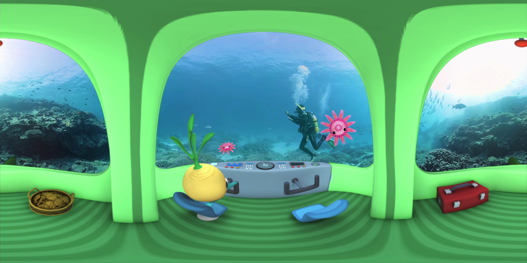 The Octonauts assets weren’t designed for a VR experience, so careful consideration had to be made to convert objects to a 360 environment while still remaining faithful to the show.