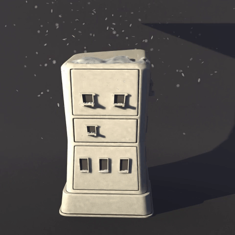 Test of one of the background buildings and the snow that builds up on it during the “snow” part