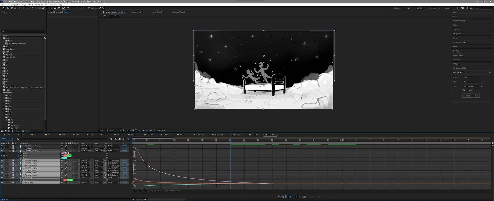 The digital storyboards were brought into After Effects to create the timing cues we would need for production.