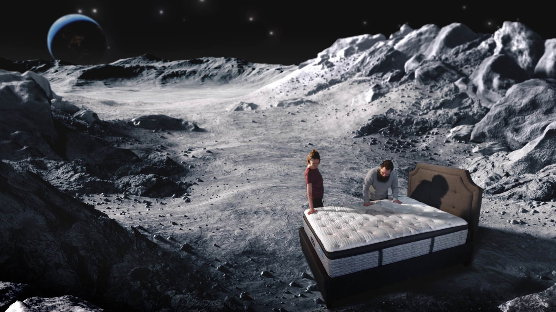 Space… the final frontier I’d always wanted to make the setting of a TV spot, but never had the chance… until the Mattress Company decided to pull the trigger on a wildcard idea: putting people “over the moon.” I was inspired by the Mattress Company’s logo and wanted to set a spot in a world where the harsh and desolate lunar landscape was contrasted by cozy, magical, and silly vignettes of people preparing to go to bed on the surface of the moon. I was visually inspired by the CHANEL spots “Ask for the Moon” and decided it was time to produce something just as magical. Only for a local mattress company instead.